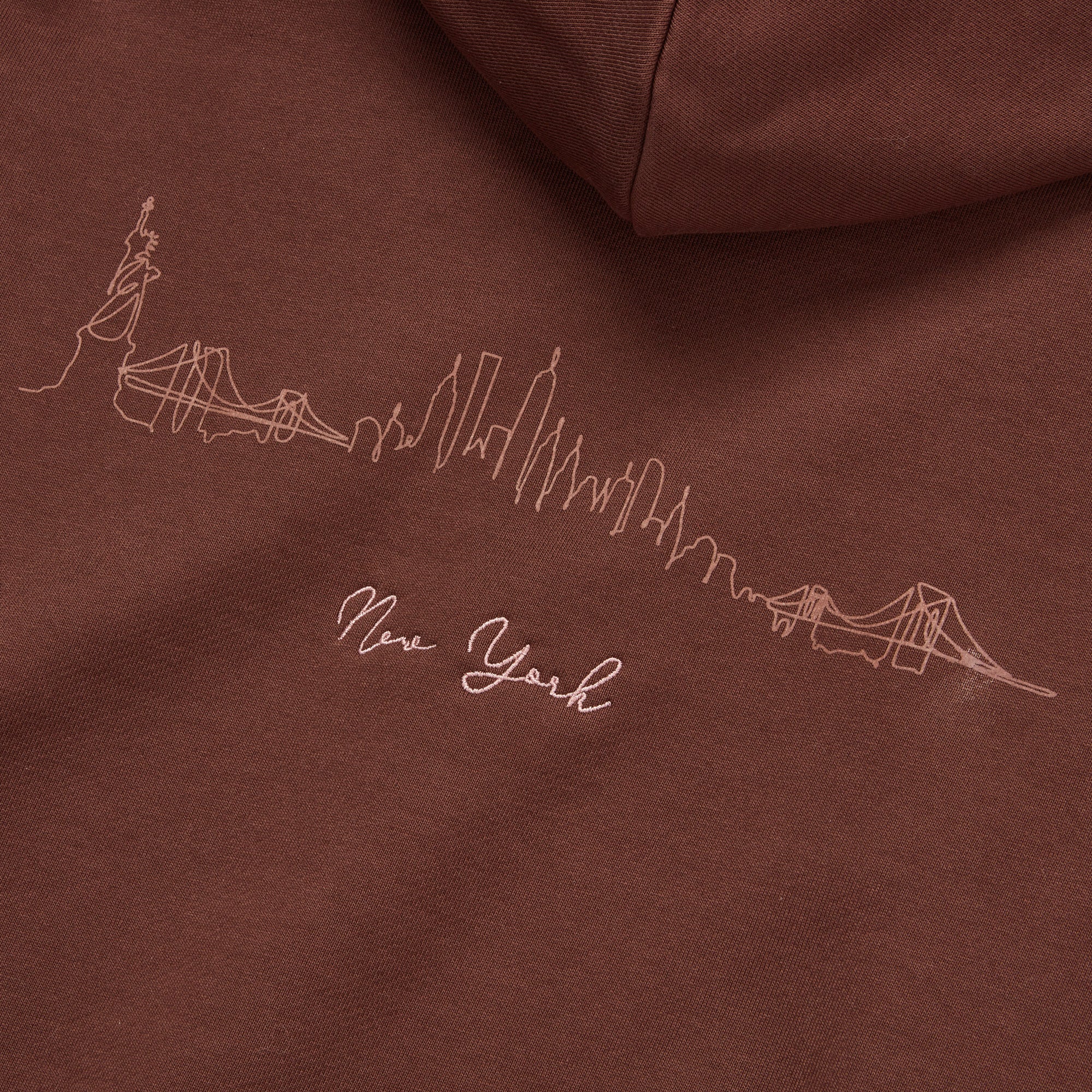 Our heavyweight 590 gsm cotton loopback with an oversized fit. Delicate but tough for the conclusive complete hoodie. Ribbed hem and cuffs with our WXM CLOTHING embroidered logo to left breast and printed New York skyline and embroidered text to the reverse.