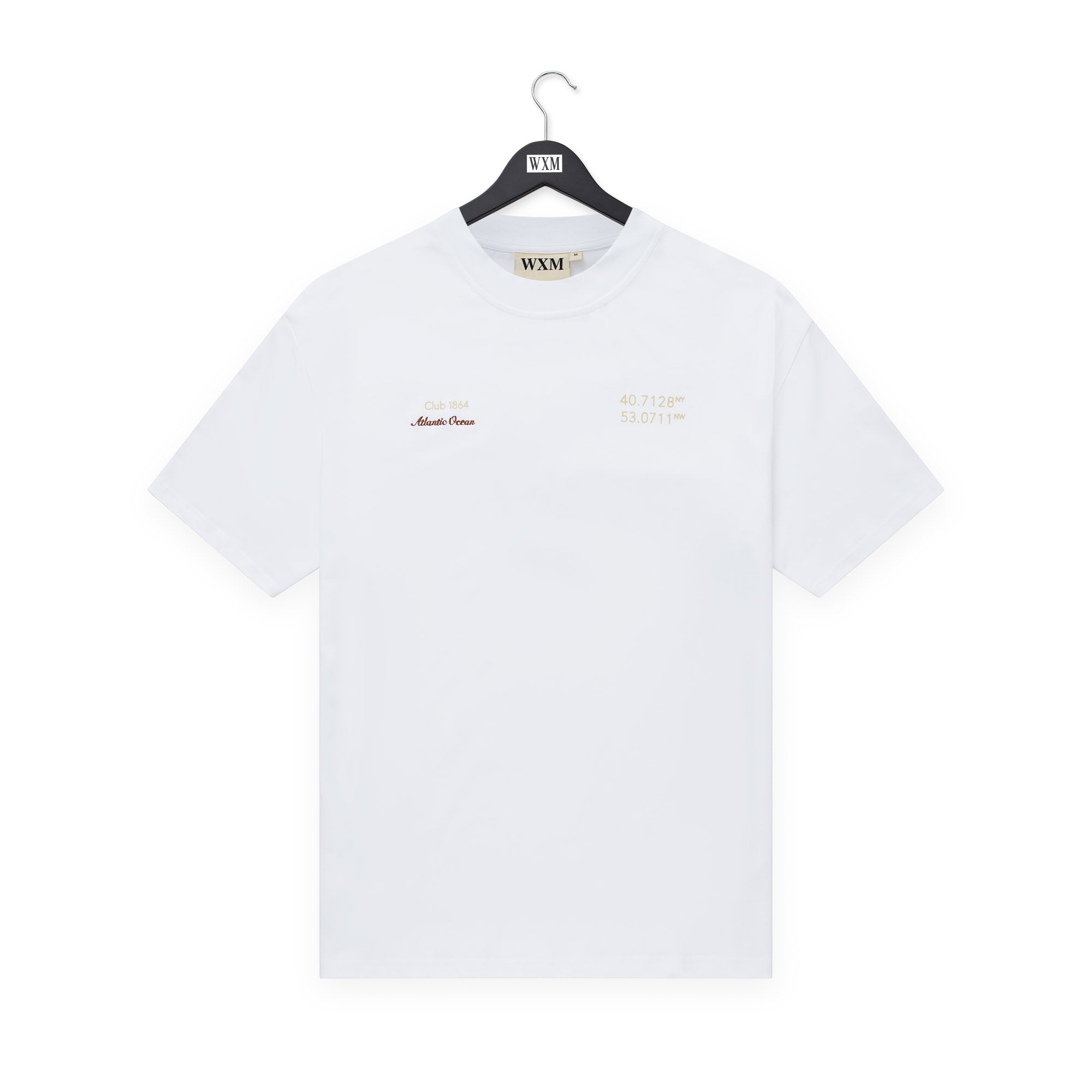 100% cotton 250gsm heavyweight t-shirt, oversized fit with our Club 1864 print and Atlantic Ocean embroidery to right breast and coordinates to left breast with Atlantic Ocean print to the reverse.