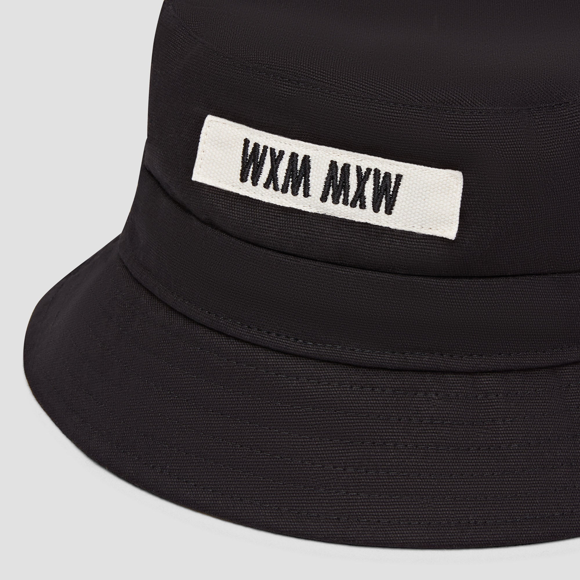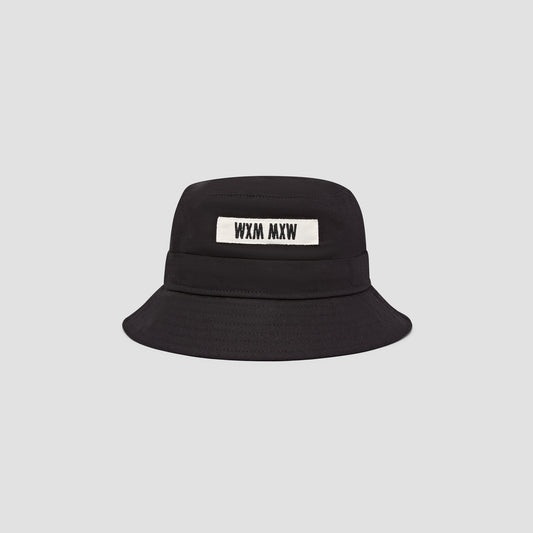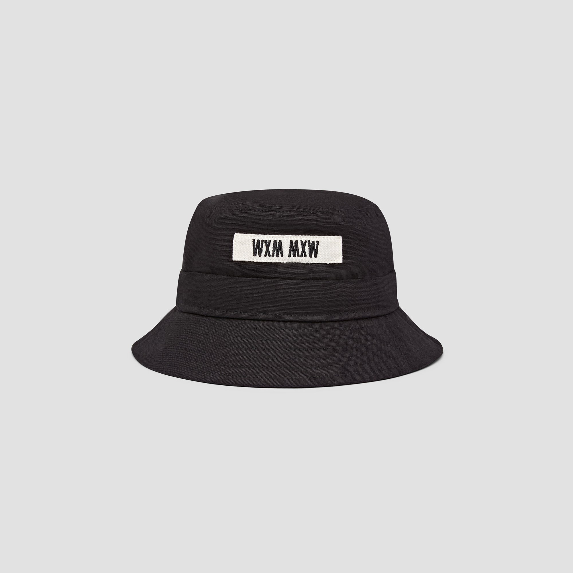 Our WXM MXW bucket hat with WXM MXW cream label to front with rear drawstring.