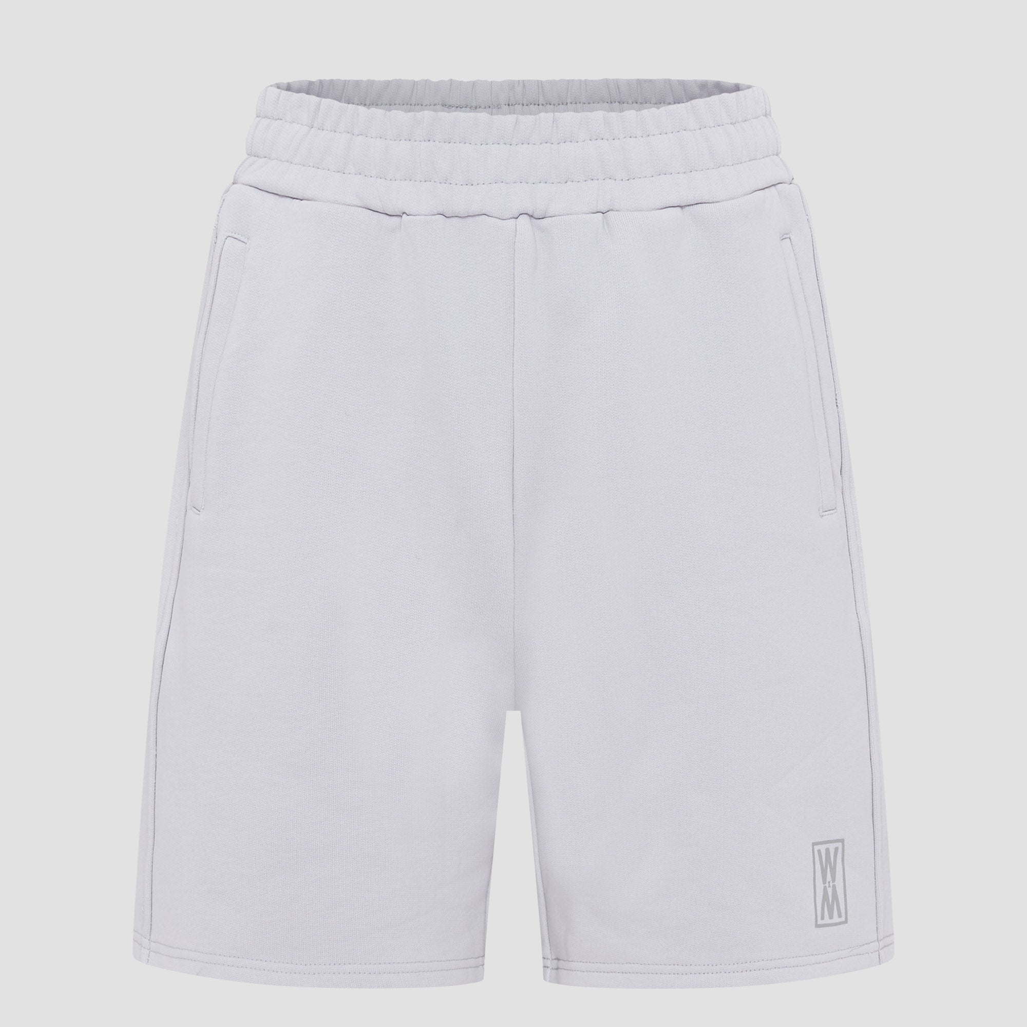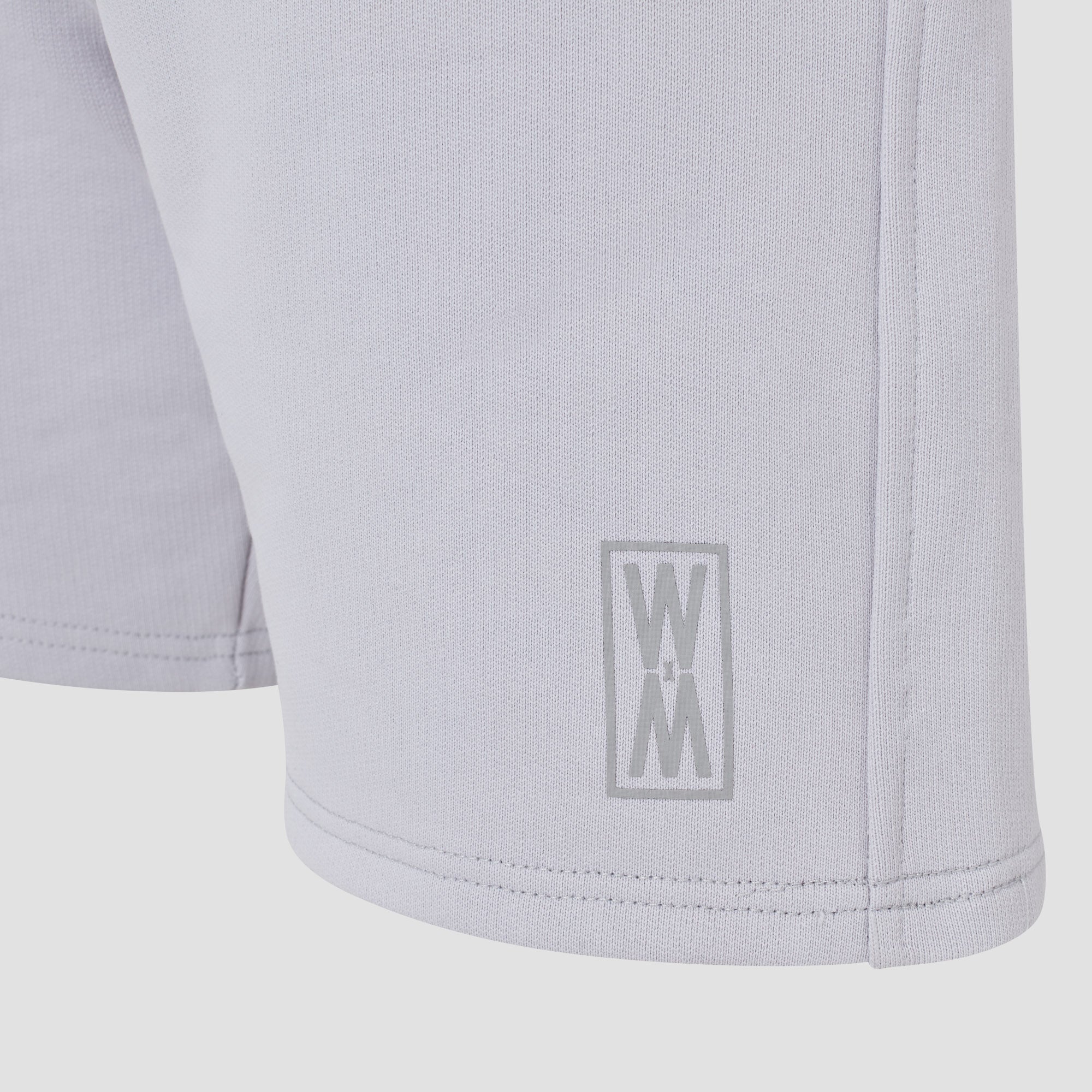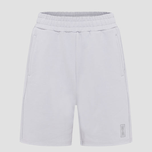 Our Oslo Stone heavyweight 590 gsm cotton loopback shorts with tonal grey print, drawstrings and WXM string ends. Finished with with our tonal grey WXM brand print to the left leg.